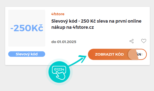 Vyberte si konkrétní slevový kód na naší stránce, který si chcete uplatnit v e-shopu 4fstore.cz. Klikněte na oranžové tlačítko "Zobrazit kód".
