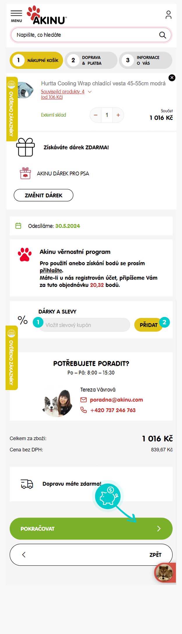 Nakupovat zde můžete produkty především spadající pod značku Akinu, ale i produkty značek Asan, Brit Care, Calibra, Zolux a mnoho dalších. Vyberte si svůj Akinu slevový kupón a udělejte radost sobě, ale i svému mazlíčkovi. Není nic krásnějšího, než vděčnost a oddanost těchto němých tváří, které nás miluju nepodmíněně celým svým zvířecím srdcem.