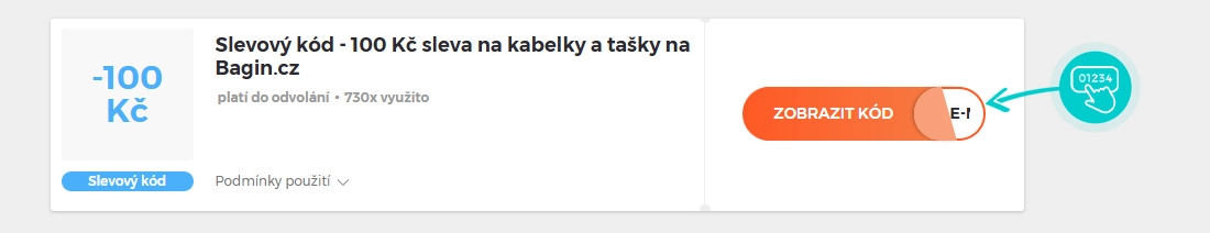 Vyberte si konkrétní slevový kód na naší stránce, který si chcete uplatnit v eshopu Bagin.cz. Klikněte na oranžové tlačítko "Zobrazit kód".