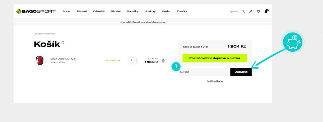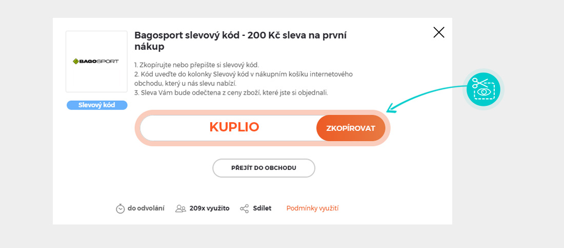 Zkopírujte nebo si opište slevový kód a klikněte na tlačítko "Přejít do obchodu". Následně budete přesměrováni přímo do e-shopu Bagosport.cz.