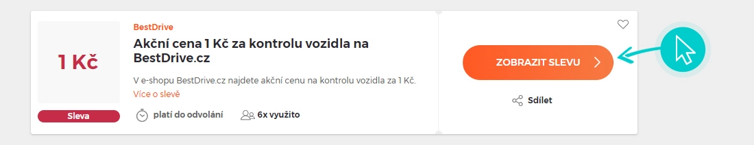 Vyberte si na naší stránce konkrétní BestDrive slevu a klikněte na tlačítko "Získej slevu". Automaticky budete přesměrováni přímo na akční nabídku v internetovém obchodě BestDrive.cz, kde můžete produkt nakoupit se slevou.