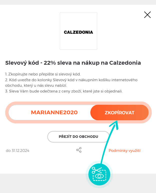 Zkopírujte nebo si opište slevový kód a klikněte na tlačítko "Přejít do obchodu". Následně budete přesměrováni přímo do e-shopu Calzedonia.cz.
