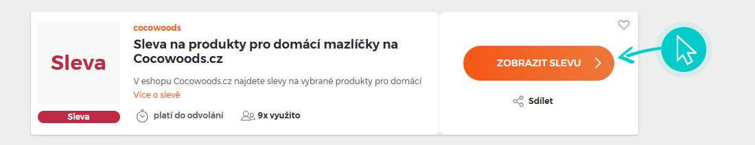 Vyberte si konkrétní slevový kód na naší stránce, který si chcete uplatnit v e-shopu Cocowoods.cz. Klikněte na oranžové tlačítko "Zobrazit kód".