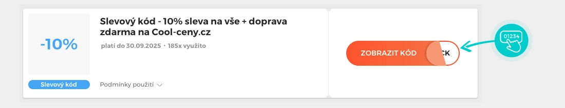 Vyberte si konkrétní slevový kód na naší stránce, který si chcete uplatnit v eshopu Cool-ceny.cz. Klikněte na oranžové tlačítko "Zobrazit kód".