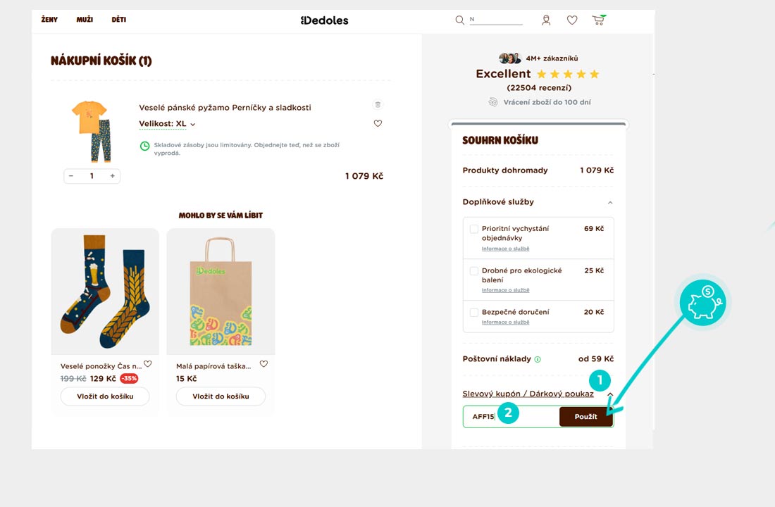 Zkopírujte nebo si opište slevový kód a klikněte na tlačítko "Přejít do obchodu". Následně budete přesměrováni přímo do e-shopu Dedoles.cz.