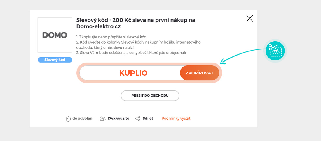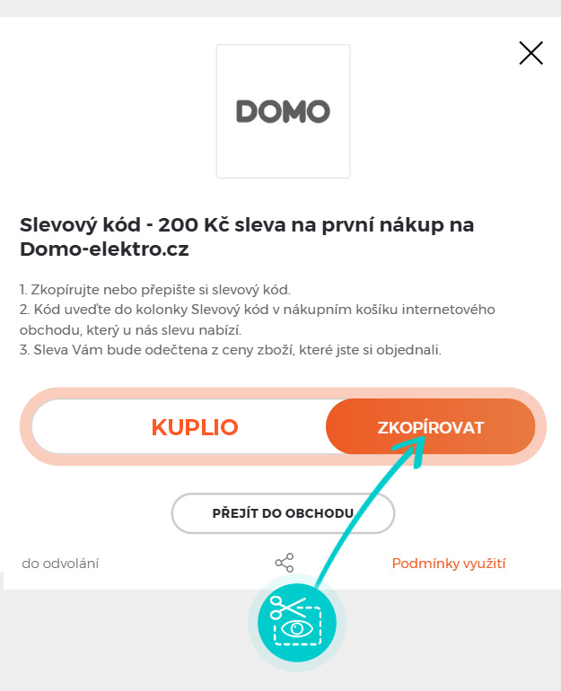 Zkopírujte nebo si odepište slevový kód a klikněte na tlačítko „Přejít do obchodu“. Následně budete přesměrováni přímo do e-shopu domo-elektro.cz.