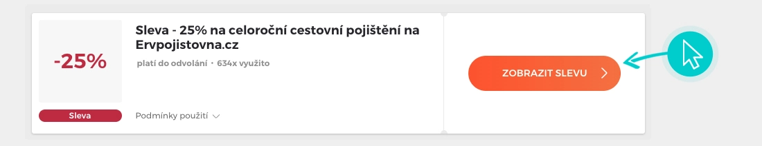 Vyberte si na naší stránce konkrétní ERV pojišťovna slevu a klikněte na tlačítko "Zobrazit slevu". Automaticky budete přesměrováni přímo na akční nabídku v internetovém obchodě ervpojistovna.cz, kde můžete produkt nakoupit se slevou.