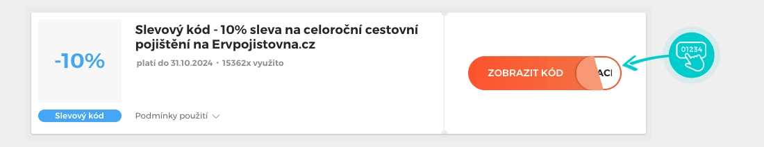 Vyberte si konkrétní slevový kód na naší stránce, který si chcete uplatnit v eshopu ervpojistovna.cz. Klikněte na oranžové tlačítko "Zobrazit kód".