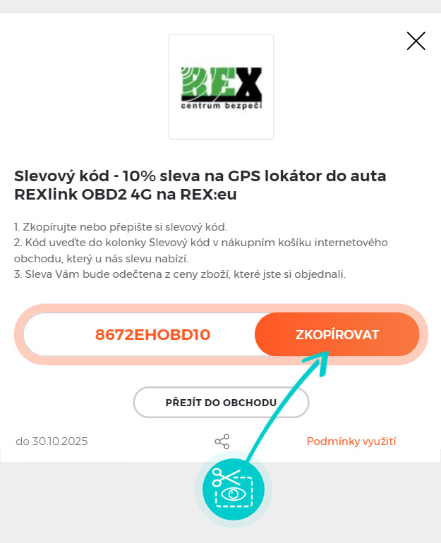 Zkopírujte nebo si opište slevový kód a klikněte na tlačítko "Přejít do obchodu". Následně budete přesměrováni přímo do eshopu eshop.rex.eu.