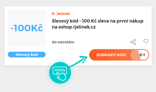 Vyberte si konkrétní slevový kód na naší stránce, který si chcete uplatnit v e-shopu Eshop.rjelinek.cz. Klikněte na oranžové tlačítko "Zobrazit kód".