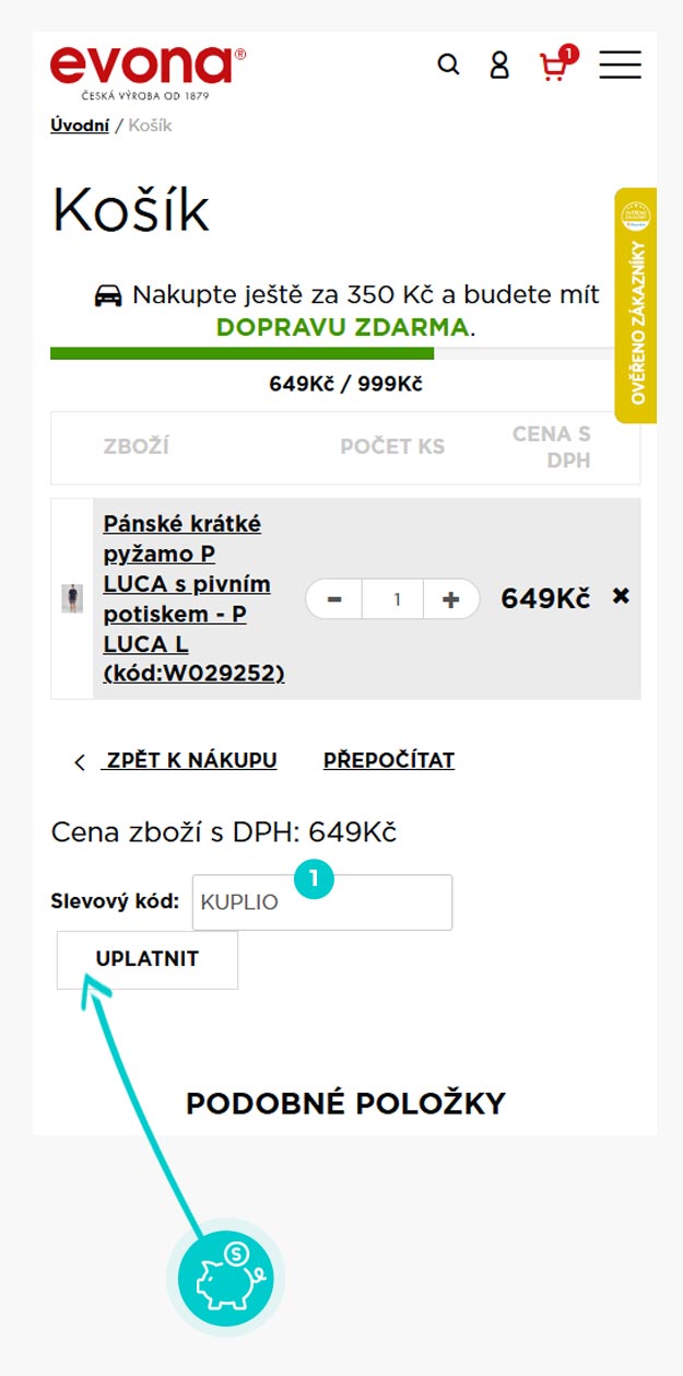Nevíte, jak přesně fungují slevové kódy na Evona.cz? Nabízíme Vám postup, jak si při nákupu můžete uplatnit slevové kódy rychle a jednoduše:
