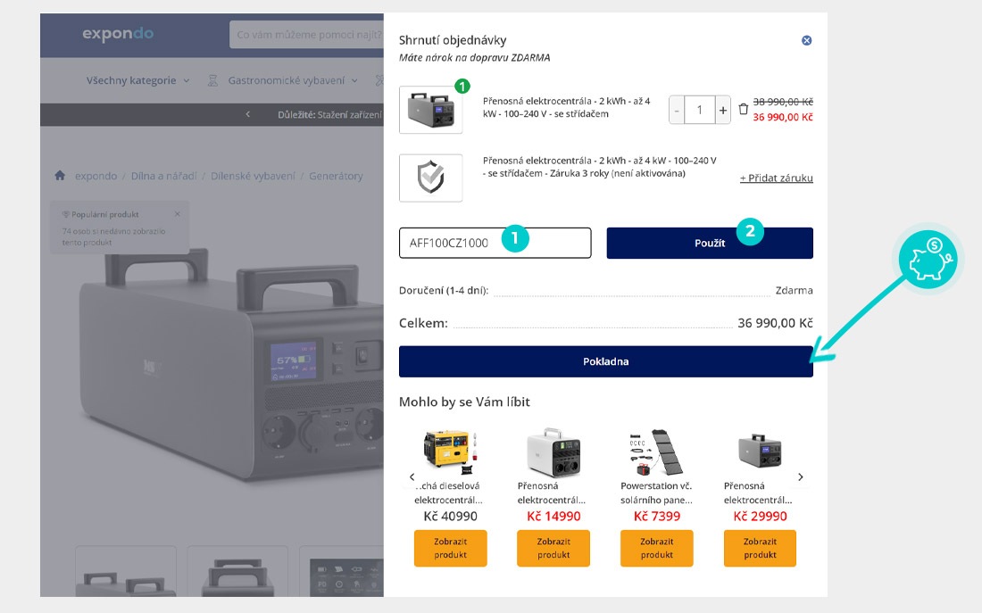 Zkopírujte nebo si opište slevový kód a klikněte na tlačítko "Přejít do obchodu". Následně budete přesměrováni přímo do e-shopu Expondo.cz.