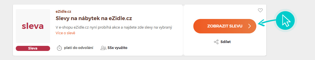 Vyberte si na naší stránce konkrétní eZidle.cz slevu a klikněte na tlačítko "Získej slevu". Automaticky budete přesměrováni přímo na akční nabídku v internetovém obchodě eZidle.cz, kde můžete produkt nakoupit se slevou.