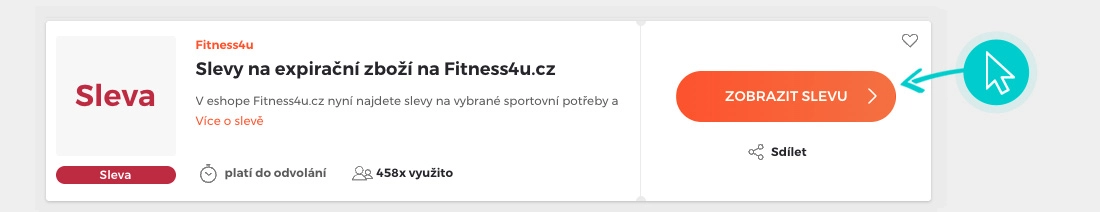 Vyberte si konkrétní slevový kód na naší stránce, který si chcete uplatnit v e-shopu Fitness4u.cz. Klikněte na oranžové tlačítko "Zobrazit kód".