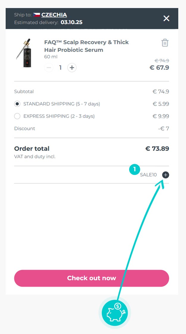 Vyberte si produkt v eshopu Foreo.com, o který máte zájem, stiskněte tlačítko "Přidat" a produkt se automaticky vloží do nákupního košíku. Přímo v nákupním košíku vedle vybraných produktů klikněte na políčko "Kód kupónu". Zde vložte zkopírovaný slevový kód nebo jej ručně vepište a potvrďte tlačítkem "Uplatnit".