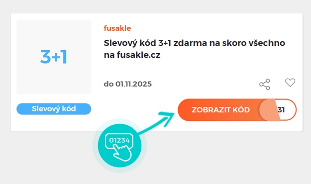Vyberte si konkrétny zľavový kód na našej stránke, ktorý si chcete uplatniť v e-shope Fusakle.cz. Kliknite na oranžové tlačidlo „Zobraziť kód“.