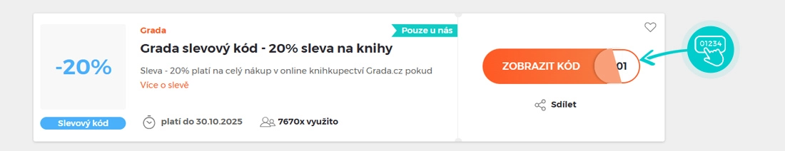 Vyberte si konkrétní slevový kód na naší stránce, který si chcete uplatnit v eshopu Grada.cz. Klikněte na oranžové tlačítko "Zobrazit kód".