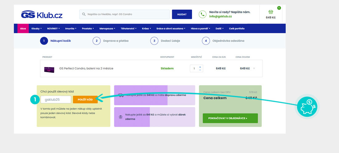 Zkopírujte nebo si opište slevový kód a klikněte na tlačítko "Přejít do obchodu". Následně budete přesměrováni přímo do eshopu gsklub.cz.