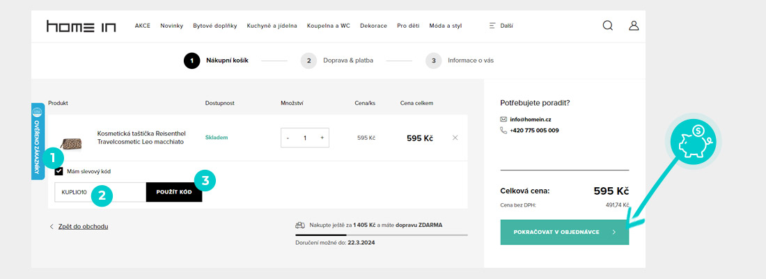 Číst více ...Nevíte, jak přesně fungují slevové kódy na Homein.cz? Nabízíme Vám postup, jak si při nákupu můžete uplatnit slevové kódy rychle a jednoduše: