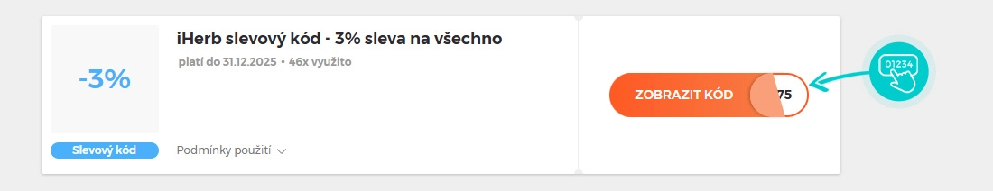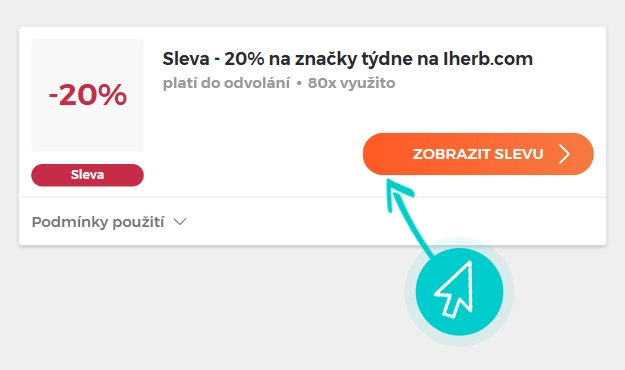 Vyberte si na naší stránce konkrétní iHerb slevu a klikněte na tlačítko "Zobrazit slevu". Automaticky budete přesměrováni přímo na akční nabídku v internetovém obchodě iHerb.com, kde můžete produkt nakoupit se slevou.