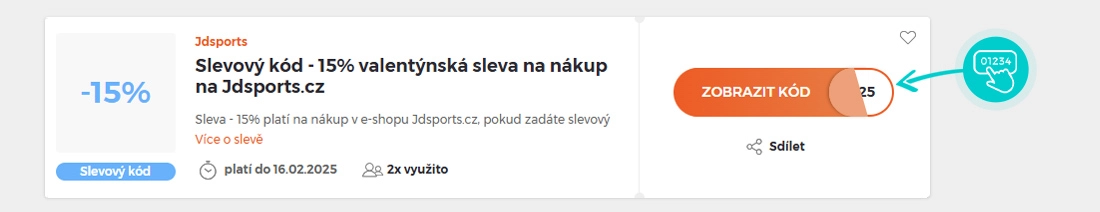 Vyberte si konkrétní slevový kód na naší stránce, který si chcete uplatnit v e-shopu JDSports.cz. Klikněte na oranžové tlačítko "Zobrazit kód".