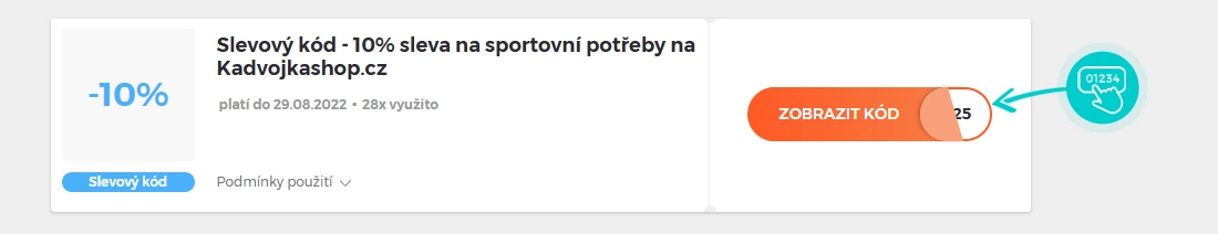 Vyberte si konkrétní slevový kód na naší stránce, který si chcete uplatnit v e-shopu Kadvojkashop.cz. Klikněte na oranžové tlačítko "Zobrazit kód".