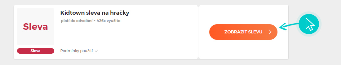 Vyberte si na naší stránce konkrétní Kidtown slevu a klikněte na tlačítko "Zobrazit slevu". Automaticky budete přesměrováni přímo na akční nabídku v internetovém obchodě Kidtown.cz, kde můžete produkt nakoupit se slevou.