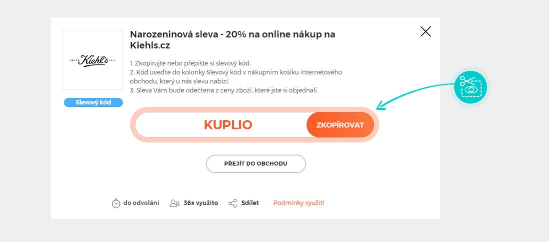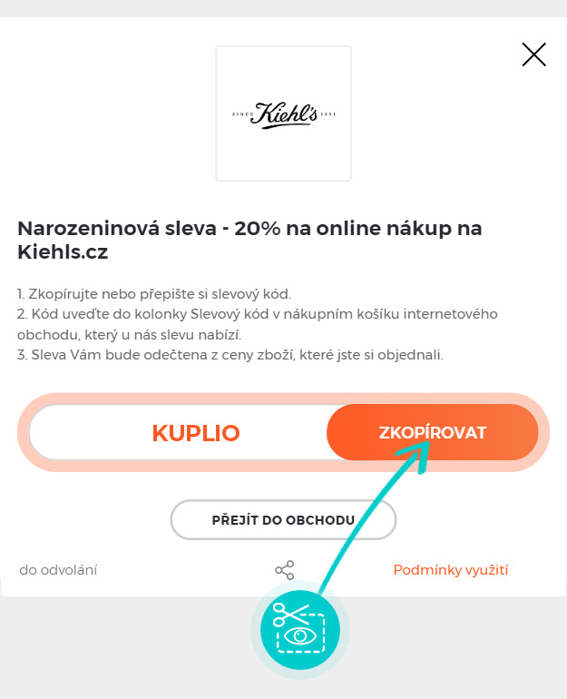 Zkopírujte nebo si opište slevový kód a klikněte na tlačítko "Přejít do obchodu". Následně budete přesměrováni přímo do eshopu Kiehls.cz.