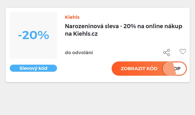 Vyberte si konkrétní slevový kód na naší stránce, který si chcete uplatnit v eshopu Kiehls.cz. Klikněte na oranžové tlačítko "Zobrazit kód".