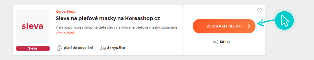 Vyberte si na naší stránce konkrétní Korea Shop slevu a klikněte na tlačítko "Zobrazit slevu". Automaticky budete přesměrováni přímo na akční nabídku v internetovém obchodě Koreashop.cz, kde můžete produkt nakoupit se slevou.