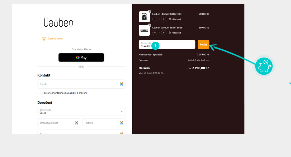 Nevíte, jak přesně fungují slevové kódy na lauben.com? Nabízíme Vám postup, jak si při nákupu můžete uplatnit slevové kódy rychle a jednoduše: