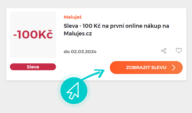 Vyberte si na naší stránce konkrétní Maluješ slevu a klikněte na tlačítko "Získej slevu". Automaticky budete přesměrováni přímo na akční nabídku v internetovém obchodě Malujes.cz, kde můžete produkt nakoupit se slevou.