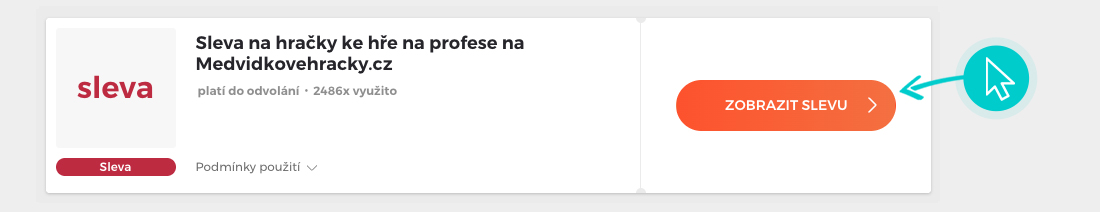 Vyberte si na naší stránce konkrétní MedvídkovéHračky slevu a klikněte na tlačítko "Získej slevu". Automaticky budete přesměrováni přímo na akční nabídku v internetovém obchodě MedvídkovéHračky.cz, kde můžete produkt nakoupit se slevou.
