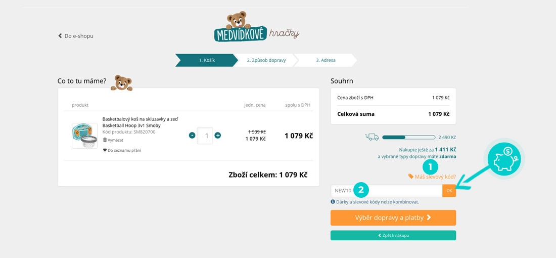 Nevíte, jak přesně fungují slevové kódy na MedvídkovéHračky.cz? Nabízíme Vám postup, jak si při nákupu můžete uplatnit slevové kódy rychle a jednoduše: