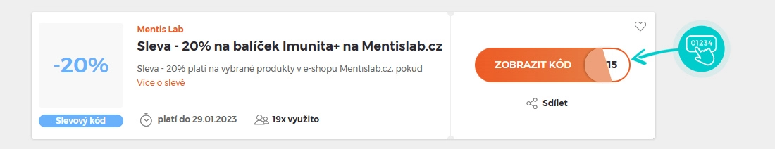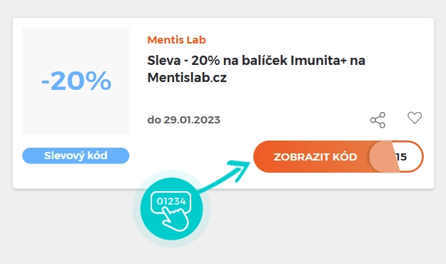 Vyberte si konkrétní slevový kód na naší stránce, který si chcete uplatnit v e-shopu Mentislab.cz. Klikněte na oranžové tlačítko "Zobrazit kód".