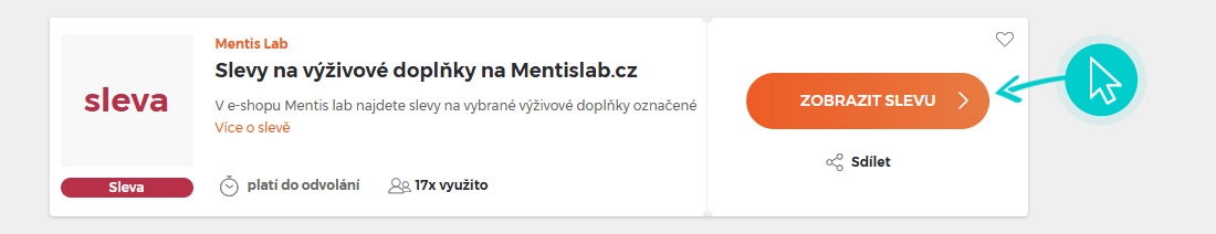 Vyberte si na naší stránce konkrétní Mentis lab slevu a klikněte na tlačítko "Získej slevu". Automaticky budete přesměrováni přímo na akční nabídku v internetovém obchodě Mentislab.cz, kde můžete produkt nakoupit se slevou.