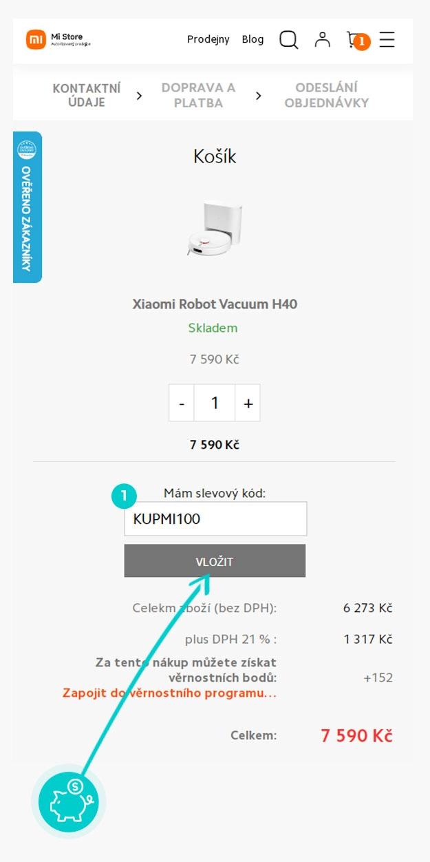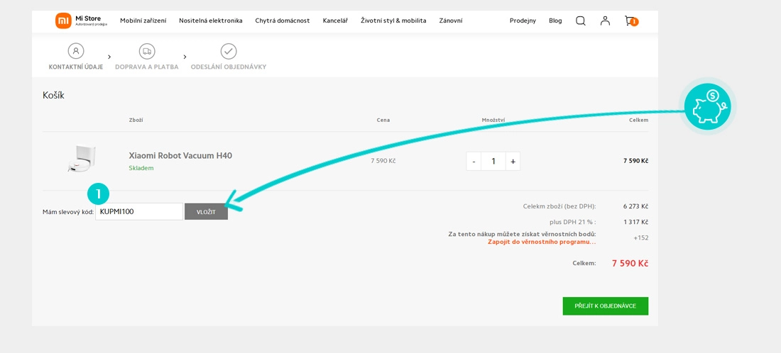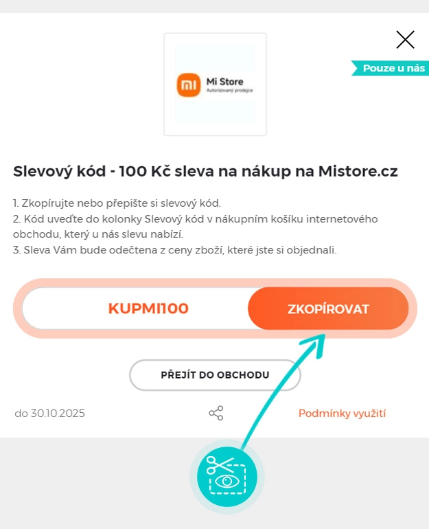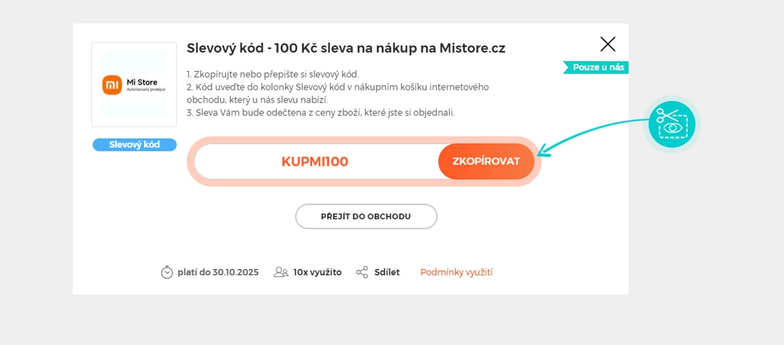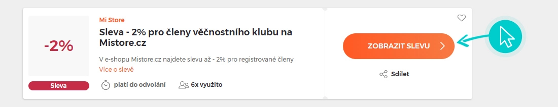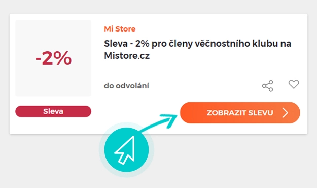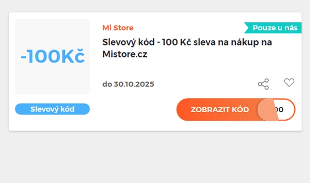 Vyberte si na naší stránce konkrétní Mi Store slevu a klikněte na tlačítko "Zobrazit slevu". Automaticky budete přesměrováni přímo na akční nabídku v internetovém obchodě Mistore.cz, kde můžete produkt nakoupit se slevou.