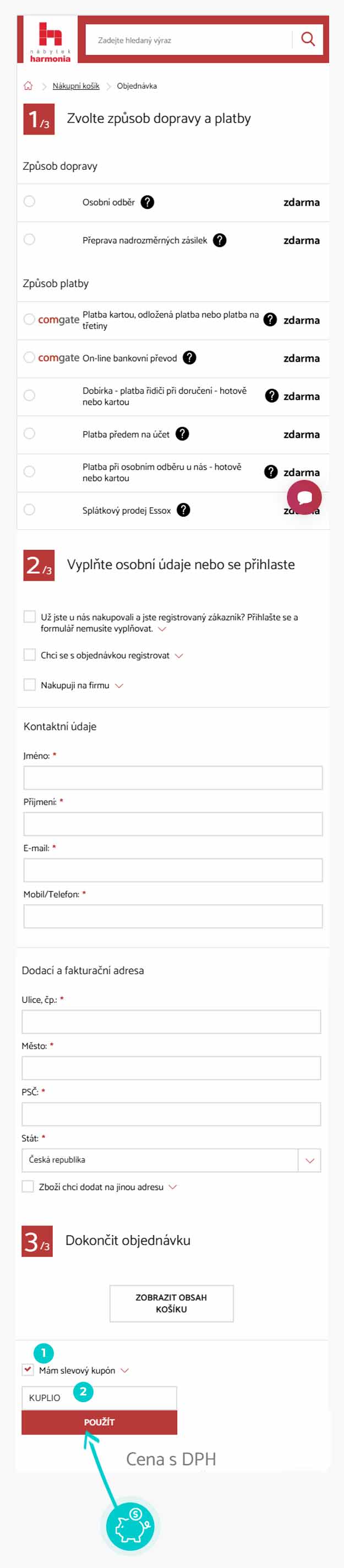 Nevíte, jak přesně fungují slevové kódy na Nabytek-harmonia.cz? Nabízíme Vám postup, jak si při nákupu můžete uplatnit slevové kódy rychle a jednoduše: