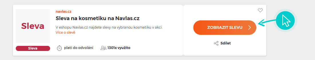 Vyberte si na naší stránce konkrétní Navlas.cz slevu a klikněte na tlačítko "Zobrazit slevu". Automaticky budete přesměrováni přímo na akční nabídku v internetovém obchodě navlas.cz, kde můžete produkt nakoupit se slevou.