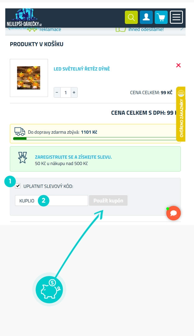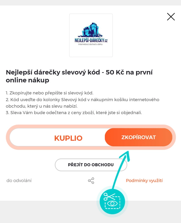 Zkopírujte nebo si opište slevový kód a klikněte na tlačítko "Přejít do obchodu". Následně budete přesměrováni přímo do eshopu Nejlepsi-darecky.cz.