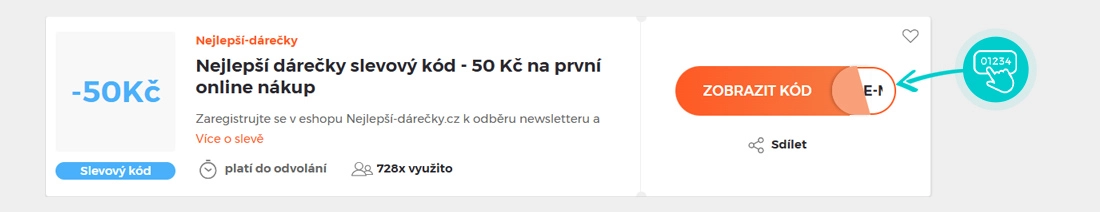 Vyberte si konkrétní slevový kód na naší stránce, který si chcete uplatnit v eshopu Nejlepsi-darecky.cz. Klikněte na oranžové tlačítko "Zobrazit kód".