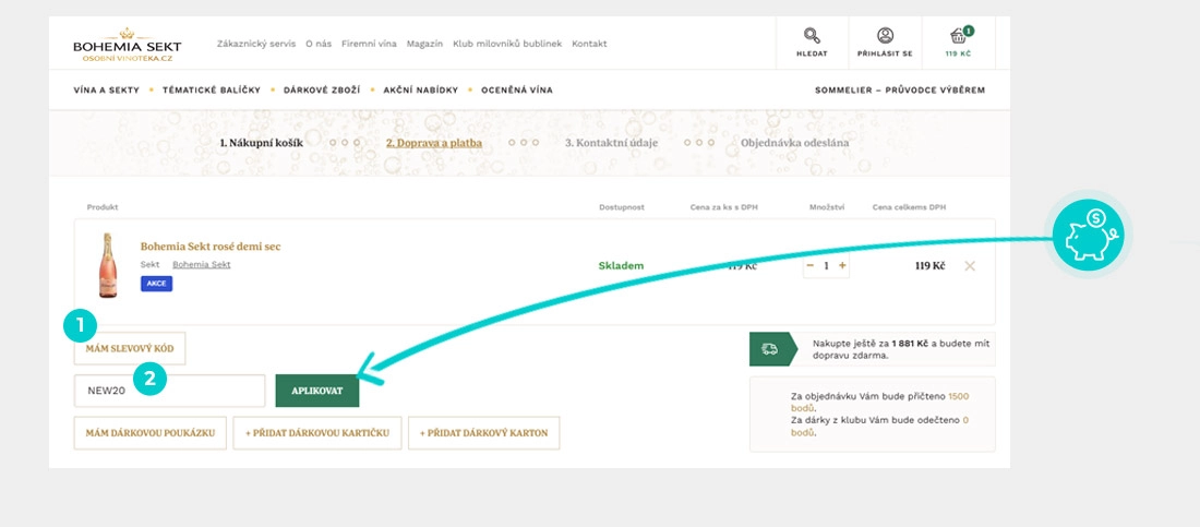 Zkopírujte nebo si opište slevový kód a klikněte na tlačítko "Přejít do obchodu". Následně budete přesměrováni přímo do e-shopu Osobnivinoteka.cz.