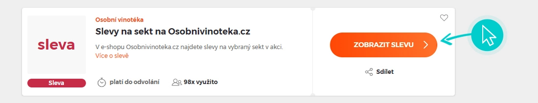 Vyberte si na naší stránce konkrétní Osobní vinotéka slevu a klikněte na tlačítko "Získej slevu". Automaticky budete přesměrováni přímo na akční nabídku v internetovém obchodě Osobnivinoteka.cz, kde můžete produkt nakoupit se slevou.