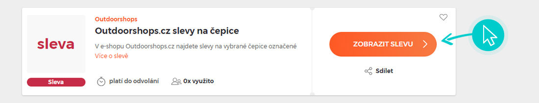 Vyberte si na naší stránce konkrétní Outdoorshops slevu a klikněte na tlačítko "Zobrazit slevu". Automaticky budete přesměrováni přímo na akční nabídku v internetovém obchodě outsdoorshops.cz, kde můžete produkt nakoupit se slevou.