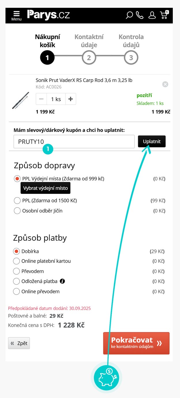 Nevíte, jak přesně fungují slevové kódy na Parys.cz? Nabízíme Vám postup, jak si při nákupu můžete uplatnit slevové kódy rychle a jednoduše: