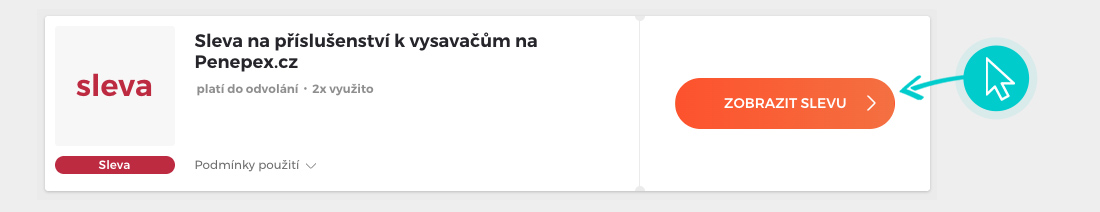 Vyberte si konkrétní slevový kód na naší stránce, který si chcete uplatnit v e-shopu Penepex.cz. Klikněte na oranžové tlačítko "Zobrazit kód".