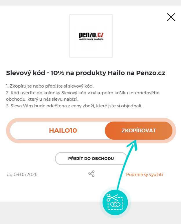 Zkopírujte nebo si opište slevový kód a klikněte na tlačítko "Přejít do obchodu". Následně budete přesměrováni přímo do eshopu penzo.cz.