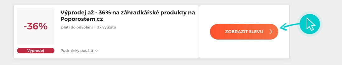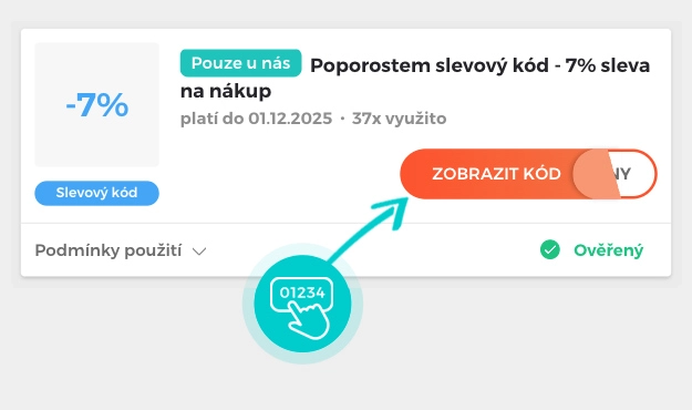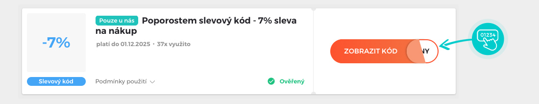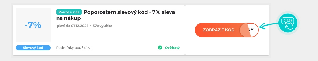 Vyberte si konkrétní slevový kód na naší stránce, který si chcete uplatnit v e-shopu Poporostem.cz. Klikněte na oranžové tlačítko "Zobrazit kód".