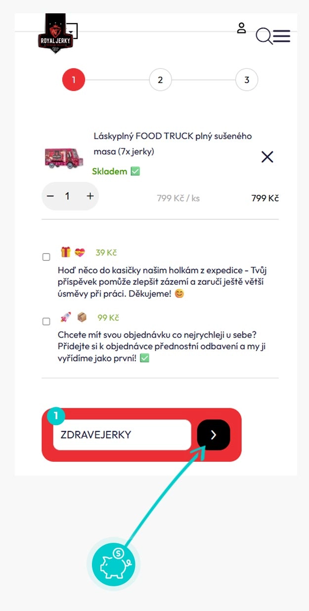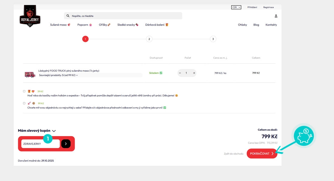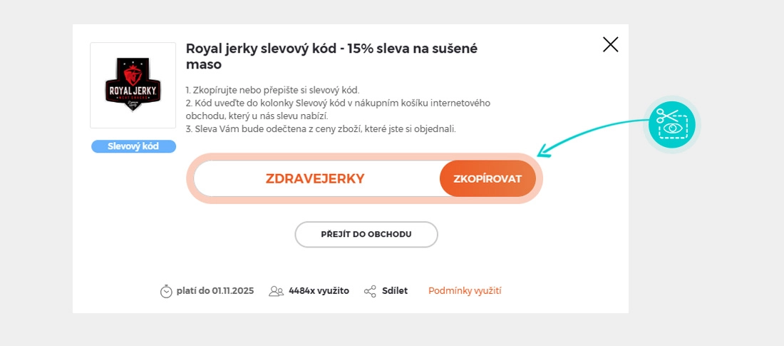 Zkopírujte nebo si odepište slevový kód a klikněte na tlačítko „Přejít do obchodu“. Následně budete přesměrováni přímo do e-shopu royaljerky.cz.