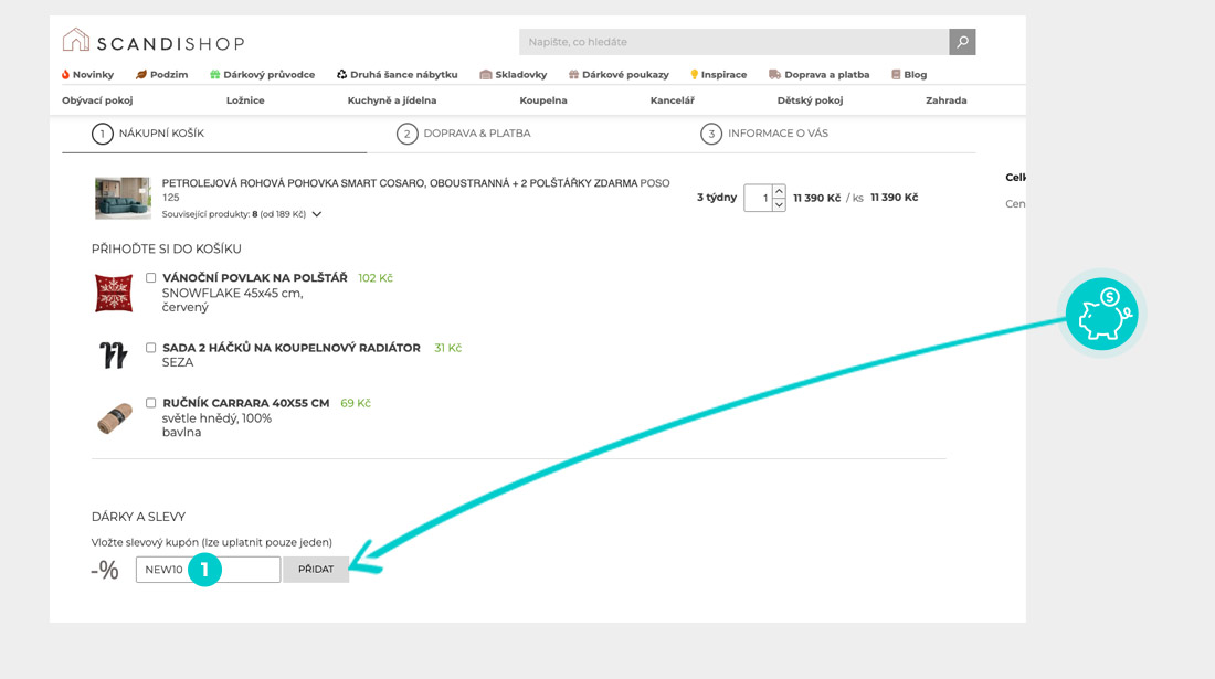 Nevíte, jak přesně fungují slevové kódy na Scandishop.cz? Nabízíme Vám postup, jak si při nákupu můžete uplatnit slevové kódy rychle a jednoduše: